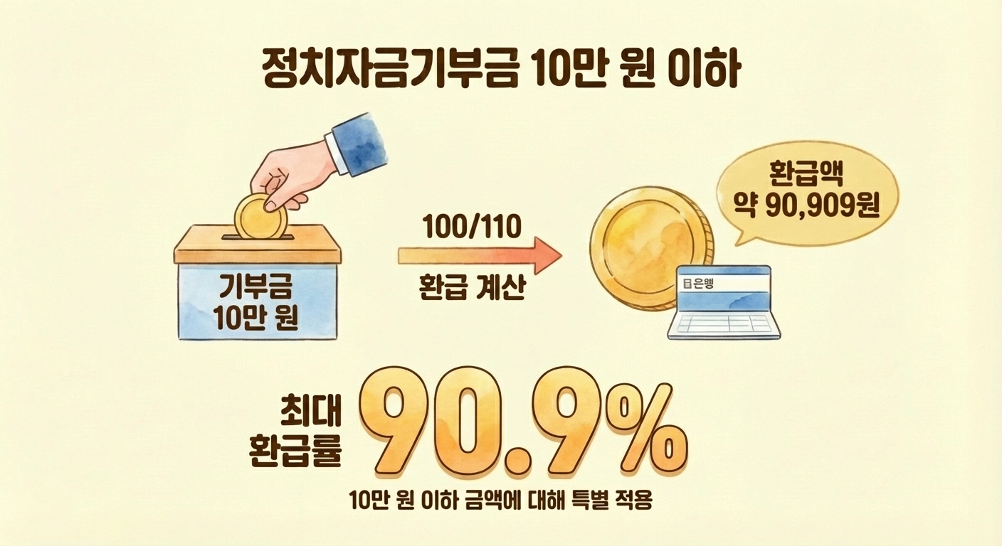 정치자금기부금은 특별히 10만 원 이하 금액에 대해 100/110 방식,