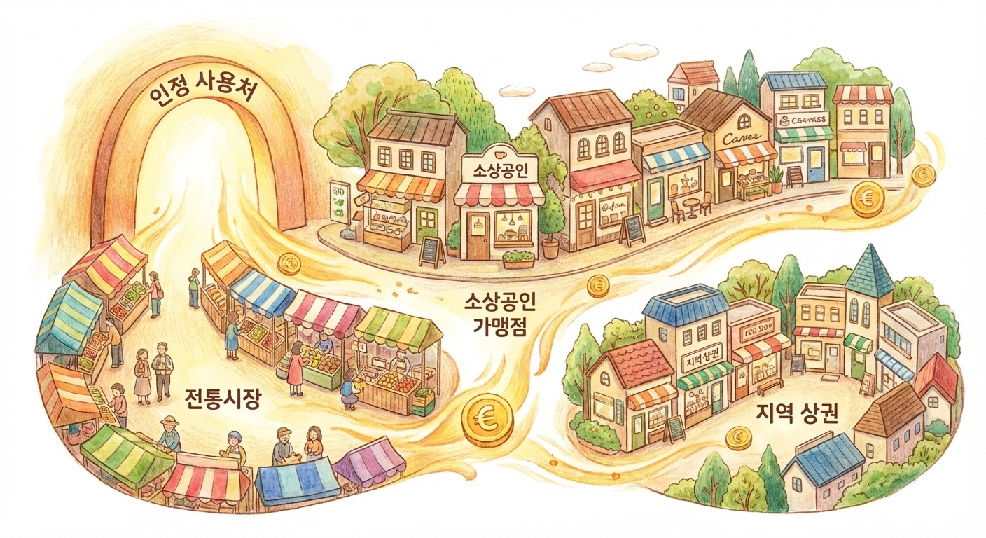 정부는 이 제도를 통해 소비를 전통시장과 골목상권으로 유도하고 있어요.